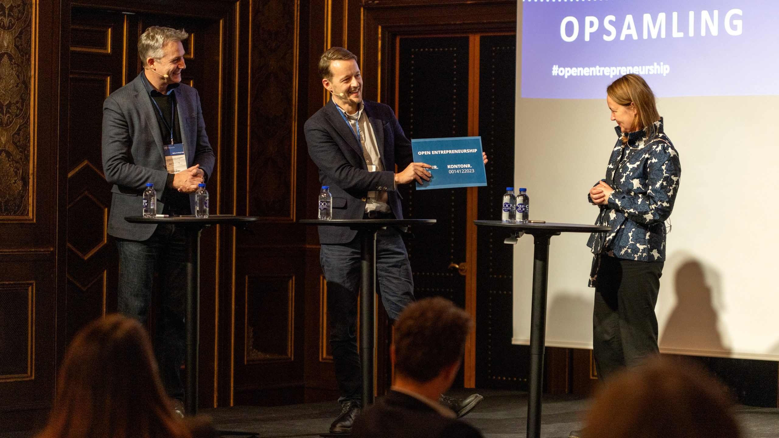 Symbolsk overdragelse af finansiering af Open Entrepreneurship. Foto: Mikal Schlosser