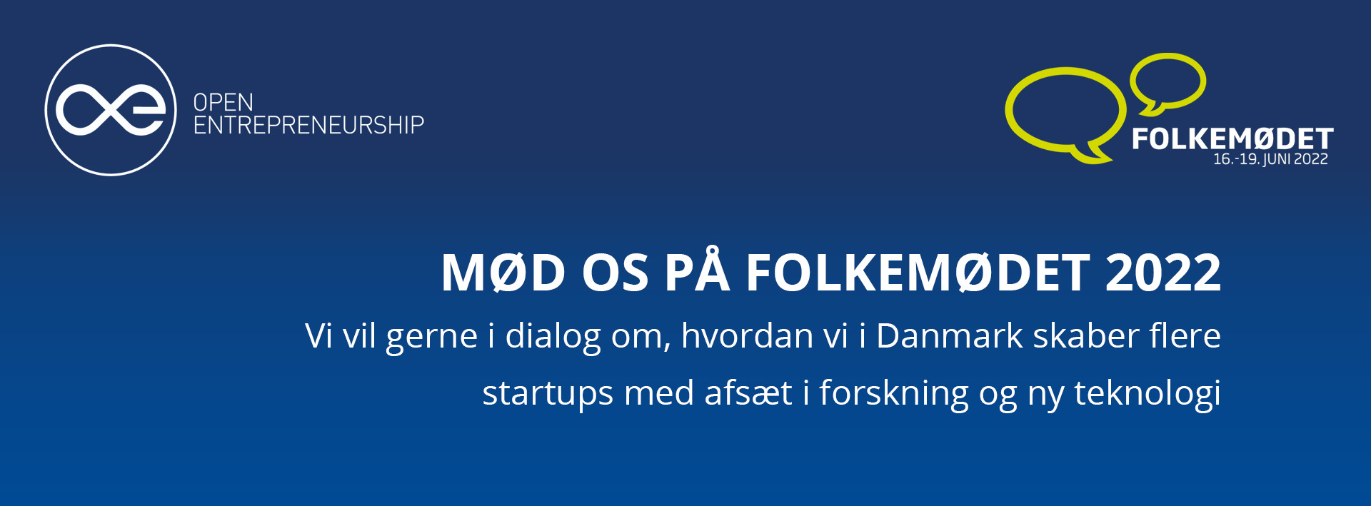 10 June 2022. By David Erichsen I Open Entrepreneurship glæder vi os til Folkemødet 2022. Vi brænder for og vil meget gerne tale om, hvordan vi i Danmark skaber flere startups med afsæt i forskning og ny teknologi Open Entrepreneurship er et samarbejde på tværs af alle danske universiteter om at skabe startups med afsæt …