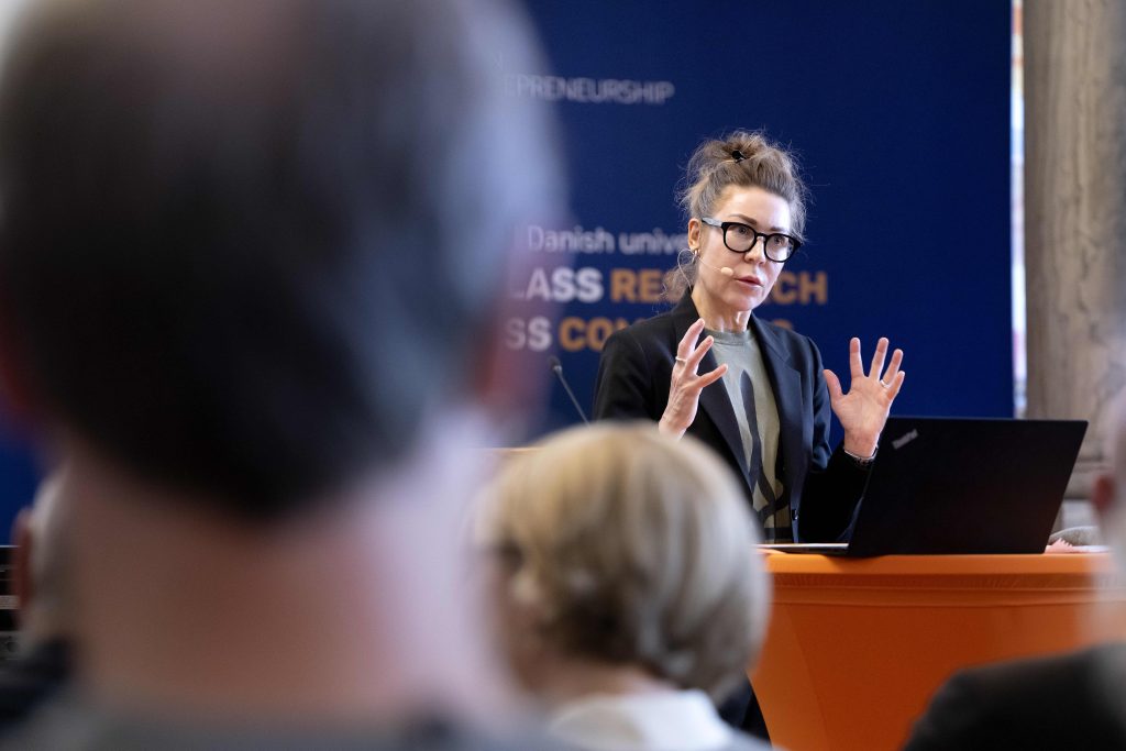 Konferencen blev indledt med tre markante stemmer i panelet i form af Astrid Haug, Lars Frølund og Christian Groes, som fra hver sit perspektiv satte scenen for dagen ved at pege på konkrete samfundsudfordringer, som forskningsbaseret innovation kan være med til at løse.