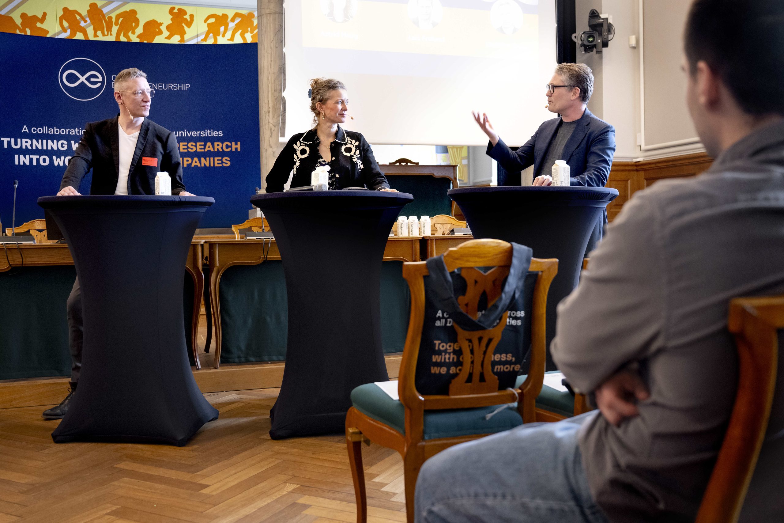 Herefter blev deltagerne inviteret ind i universiteternes maskinrum, der hvor kommende startups udvikles, forskere matches med eksterne og den kommercielle rejse så at sige faciliteres. De tre cases som blev præsenteret på scenen var: